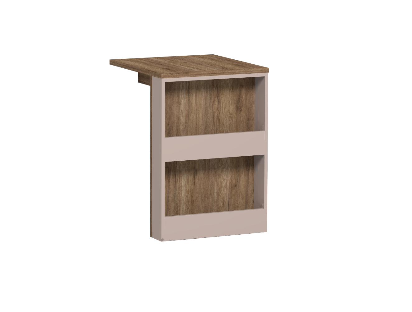 Увеличить площадь рабочего места для размещения книг, рабочих тетрадей и техники можно используя дополнительную консоль к модулю Cтол письменный 84 Nature. С внешней стороны приставного стола имеется дополнительная ниша для хранения. Угловой стол можно установить с любой стороны письменного стола, образуя тот угол, который подразумевает планировка комнаты. Ширину стола можно увеличить или уменьшить на 150 мм с шагом в 1 мм.