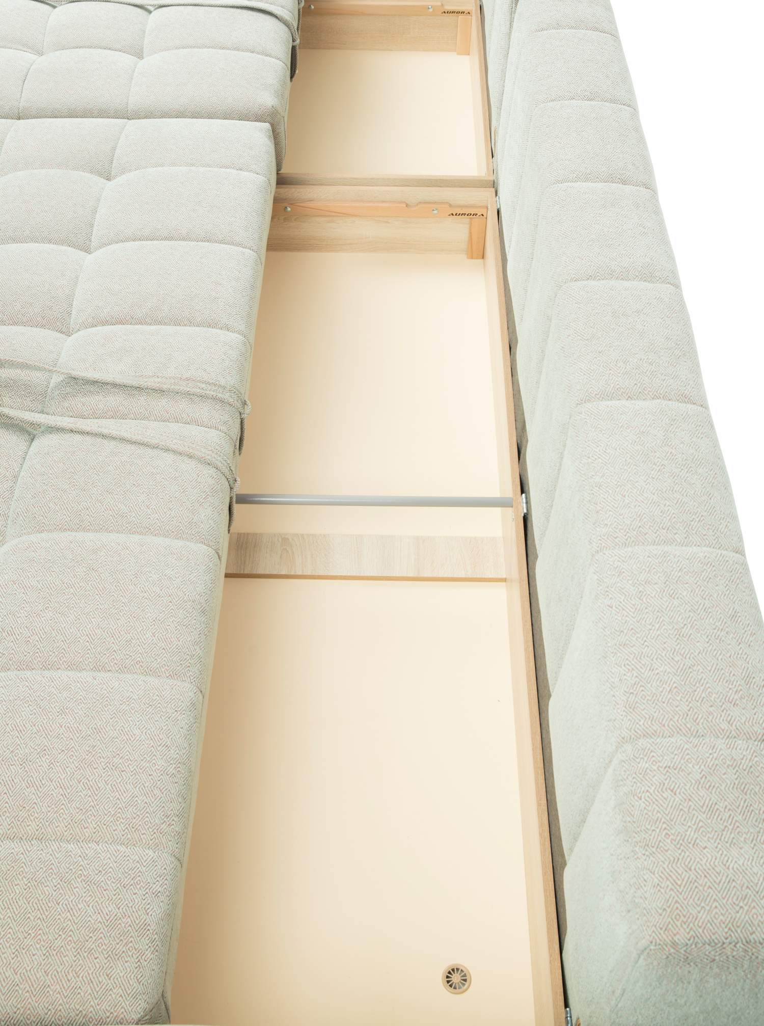 В основании дивана металлический каркас HEAVY METAL, с дополнительной гарантией 67 месяцев. Вы легко сможете разложить диван с помощью механизма «еврокнижка» со стальными направляющими AURORA STEEL.