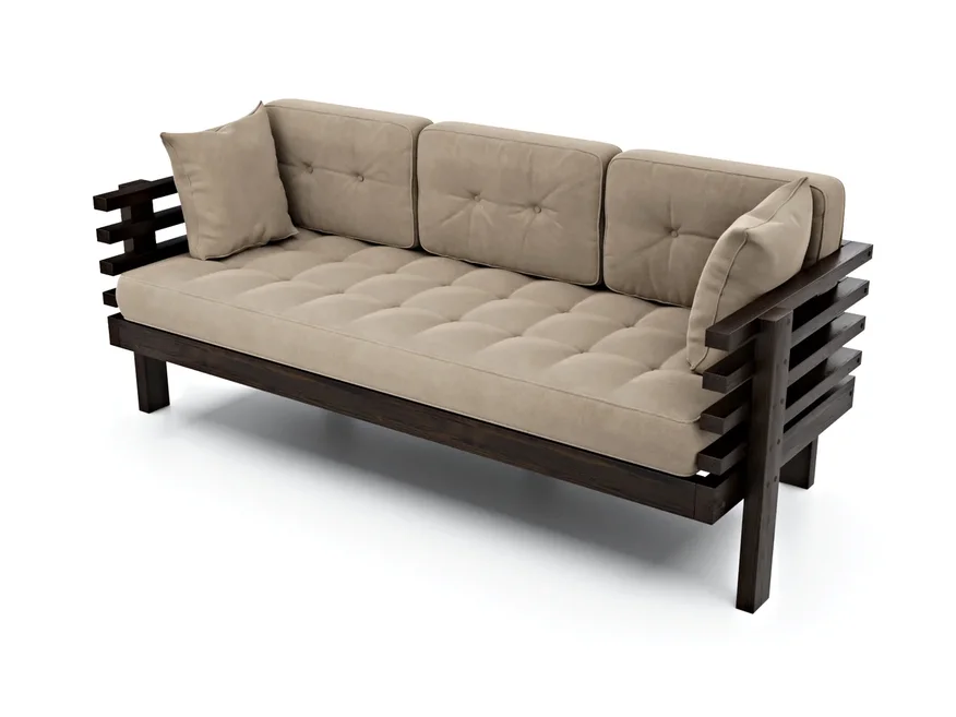 Комплект поставки: Каркас, матрас, три приспинные и две декоративные подушки