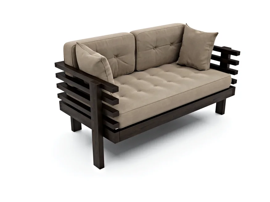 Комплект поставки: Каркас, матрас, две приспинные и две декоративные подушки
