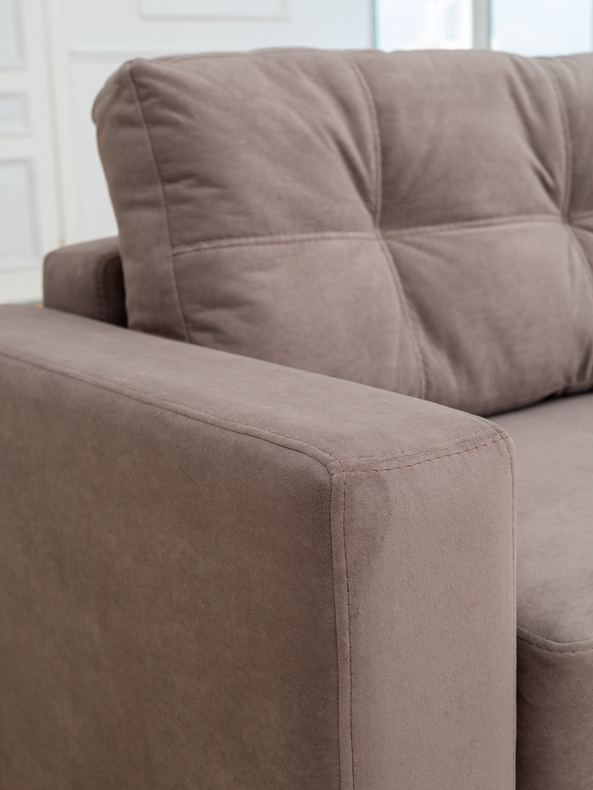 Представленная модель мягкой мебели имеет декоративную прострочку, которая обеспечивает плотное прилегание ткани к наполнителю и ее ровное распределение. Подойдет как для просторных домов и компактных квартир.