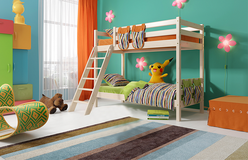 Двухъярусная кровать "Соня" с наклонной лестницей. Кровать может монтироваться на правую или левую сторону, имеет компактный вид в разборе.