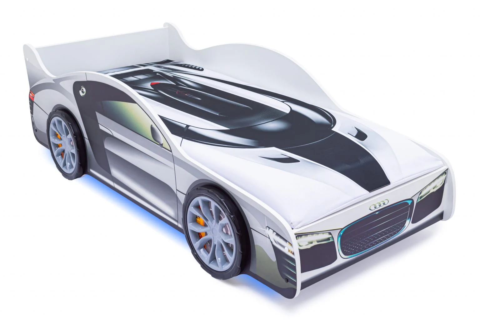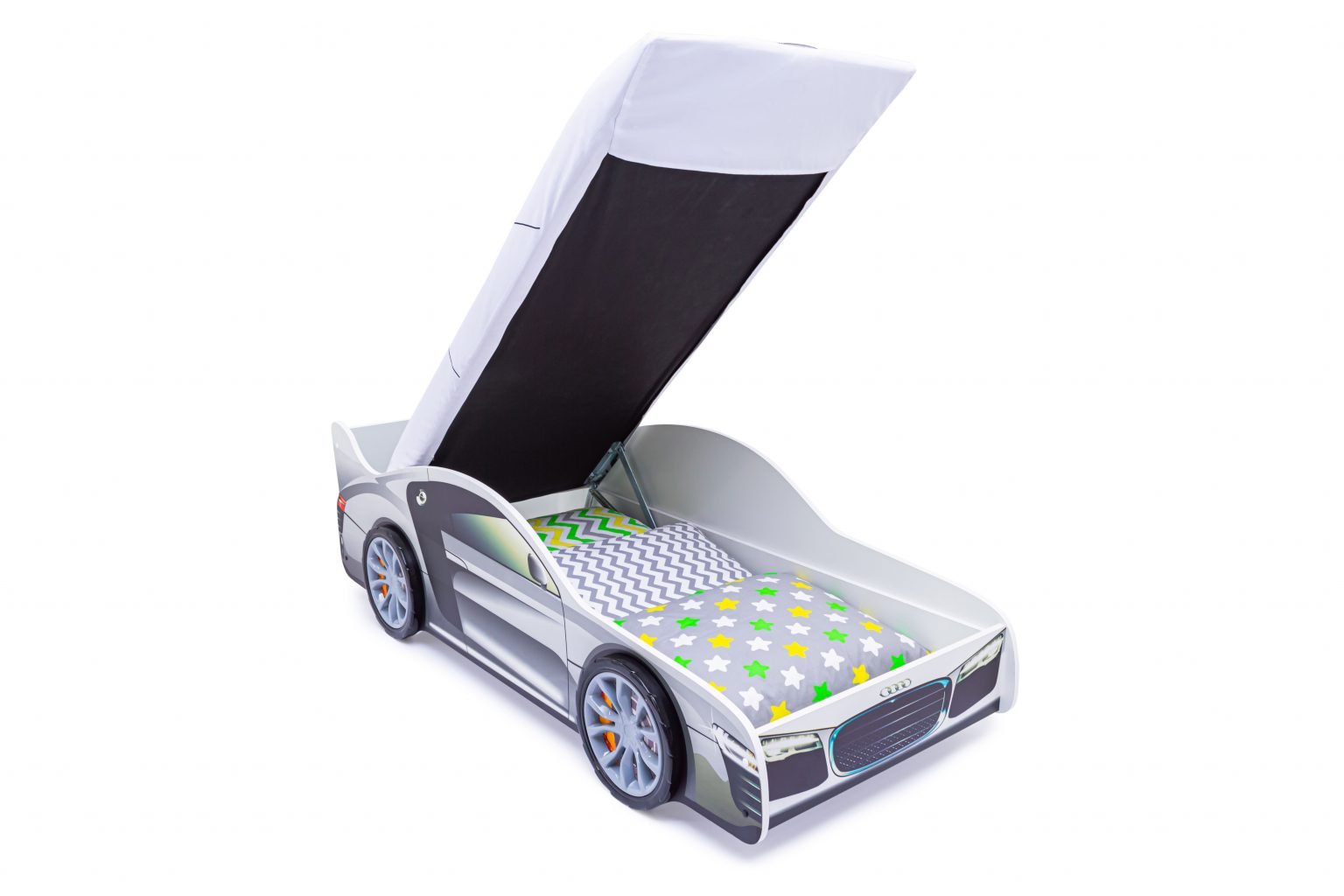 Детская кровать-машина “Ауди” с подъемным механизмом станет любимым местом для сна и игр мальчика или девочки от 2 до 10-12 лет.