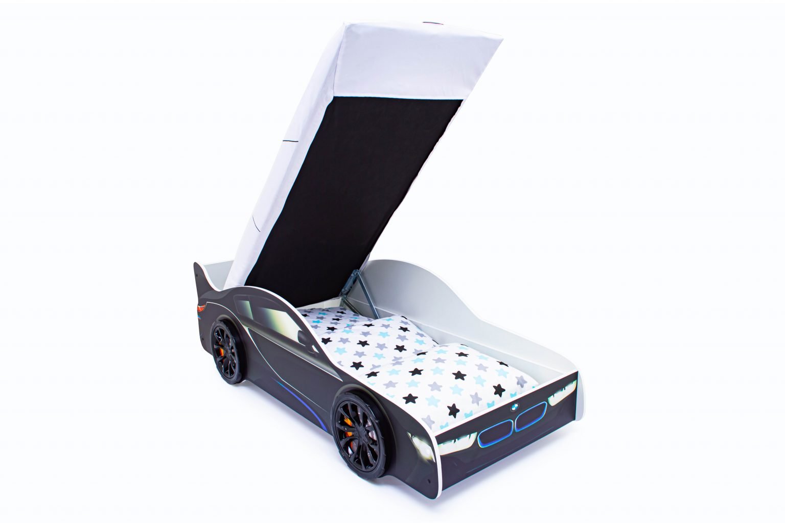 Детская кровать-машина “БМВ” с подъемным механизмом станет любимым местом для сна и игр мальчика или девочки от 2 до 10-12 лет.