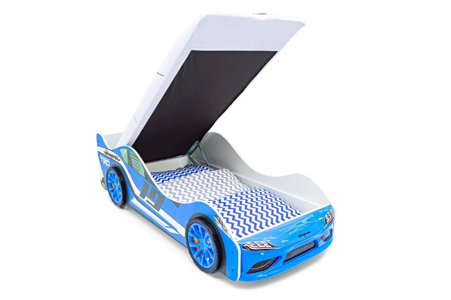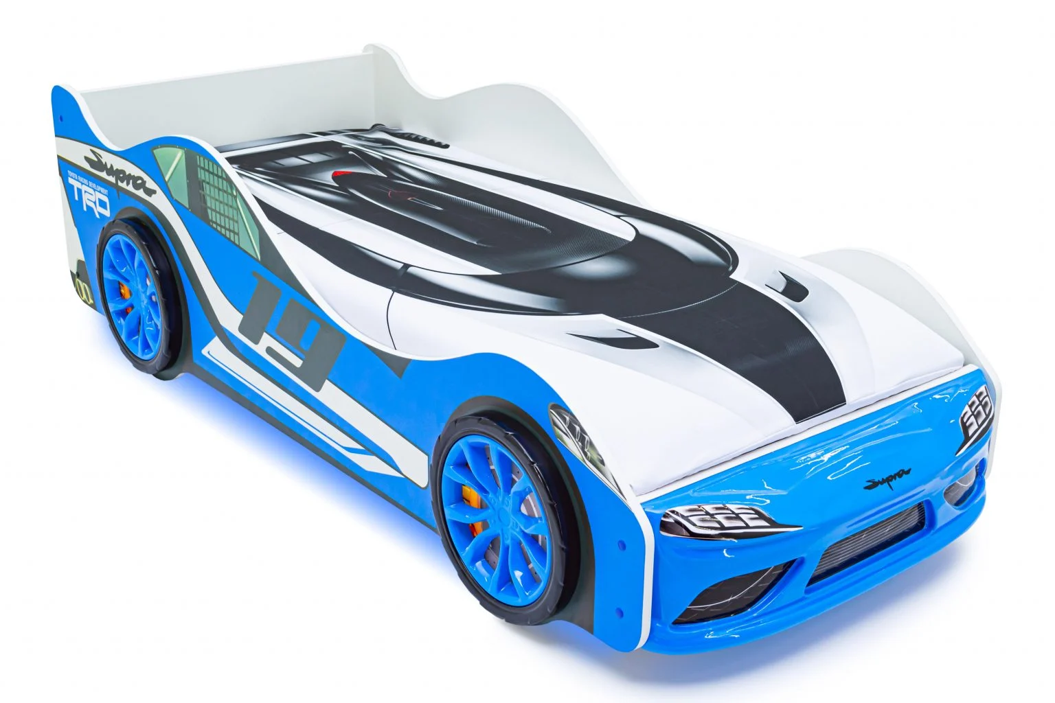 Детская кровать-машина “Супра” синяя станет любимым местом для сна и игр мальчика или девочки от 2 до 10-12 лет.