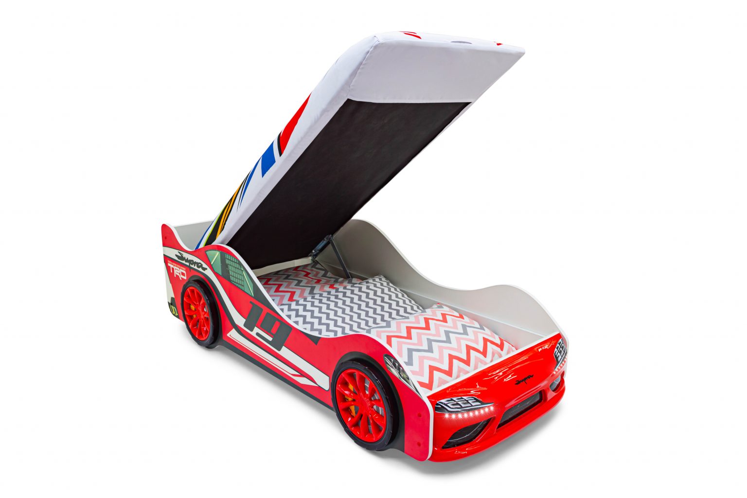 Магазин мебели «100Диванов» предлагает купить Кровать-машина "Супра" красная с подъемным механизмом и подсветкой фар в Урае по выгодным ценам от производителя с доставкой.