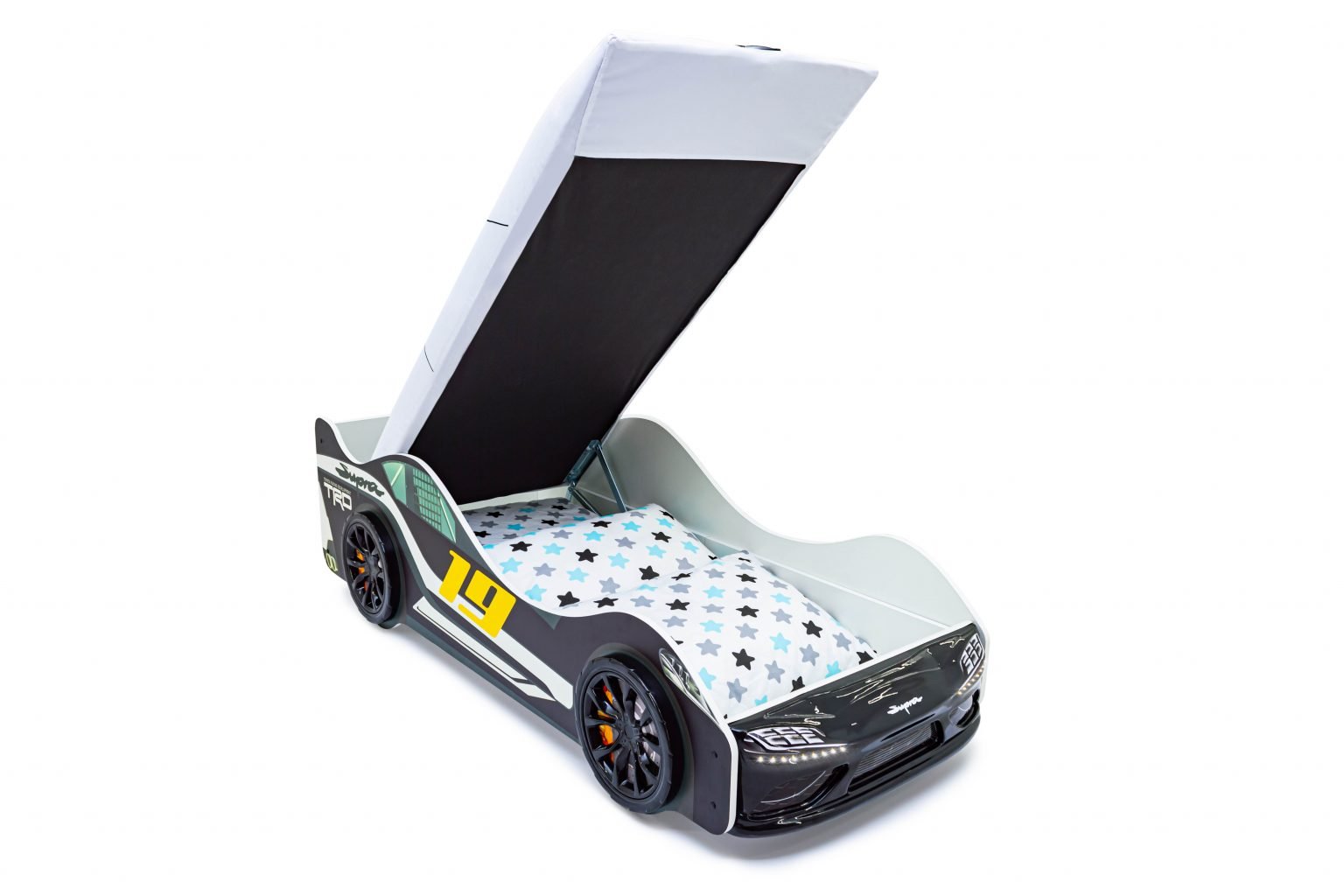 Магазин мебели «100Диванов» предлагает купить Кровать-машина "Супра" черная с подъемным механизмом и подсветкой фар в Урае по выгодным ценам от производителя с доставкой.