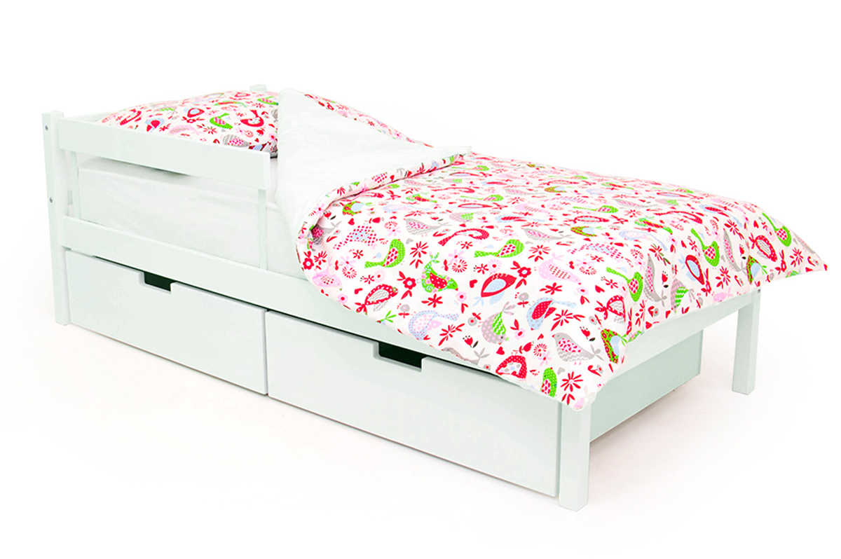 Для удобства хранения игрушек или постельных принадлежностей, вы можете приобрести еще вместительные ящики, которые устанавливаются под основание кровати. Многообразие цветов фасадов ящика позволяет скомплектовать разные варианты.