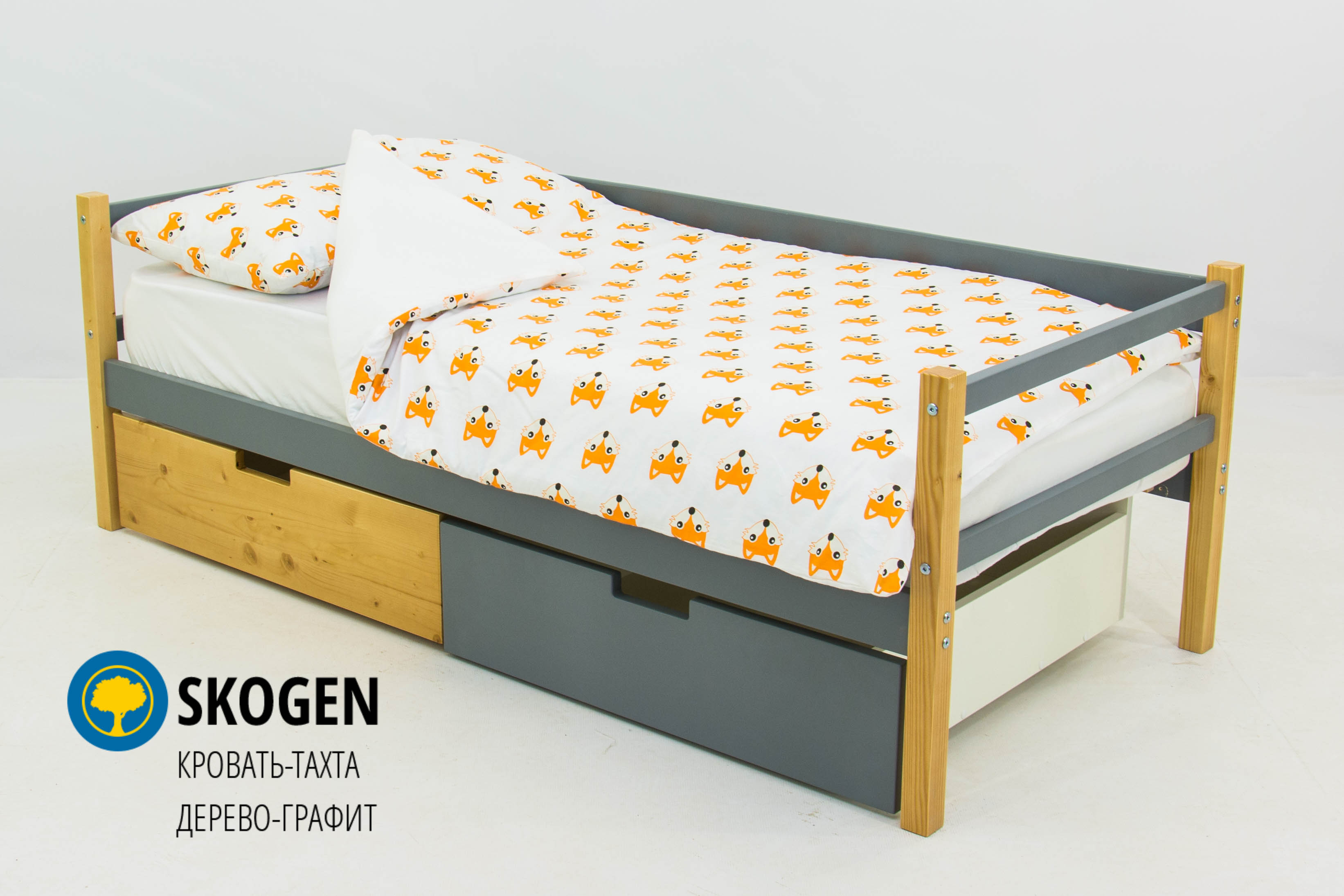 Детская кровать-тахта «Skogen» изготовлена из сосны. Мебель из сосны долговечна и надежна, прослужит вашему ребёнку на протяжении всего этапа взросления, так как основание кровати выдерживает нагрузку до 200 кг, а спальное место имеет размеры 160*70, на такой кровати комфортно себя чувствует ребенок вплоть до 11-12 лет.