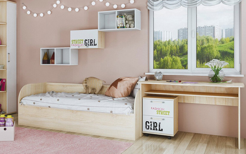 Кровать с подъемным механизмом "Сенди" имеет в основании настил ЛДСП. Отделение под основанием кровати подойдет для хранения постельного белья или иных вещей ребенка. Каркас кровати выполнен из ЛДСП.