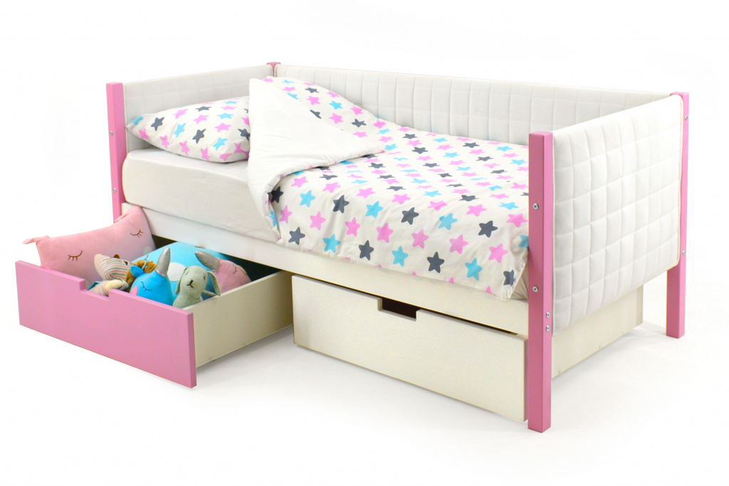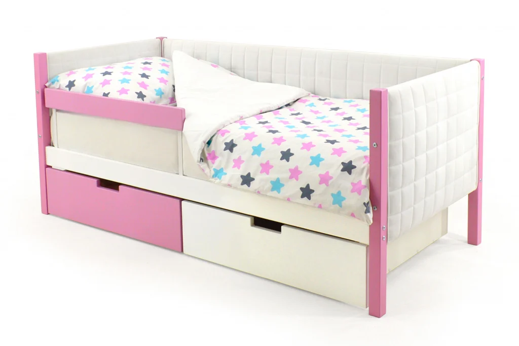 Кровать оборудована манежным бортиком, который защищает малыша от падения во время игр. А для обеспечения дополнительной безопасности малыша во время сна можно приобрести съемный бортик. Особенность его в том, что он закрывает кровать не по всей длине, а только ее часть, благодаря такому конструктиву, ребёнок легко сможет сам забираться на свое спальное место.