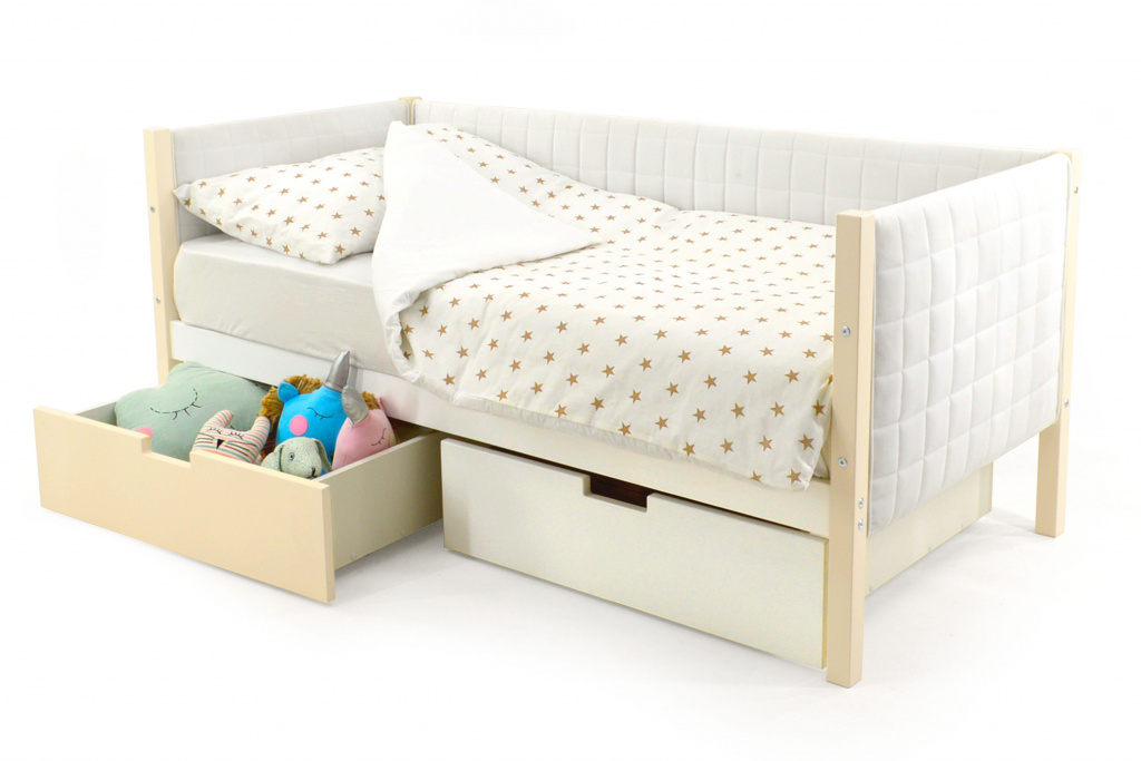 Детская мягкая кровать-тахта Бельмарко “Svogen бежево-белый” станет любимым местом для сна и игр мальчика или девочки от 2 до 10-12 лет.