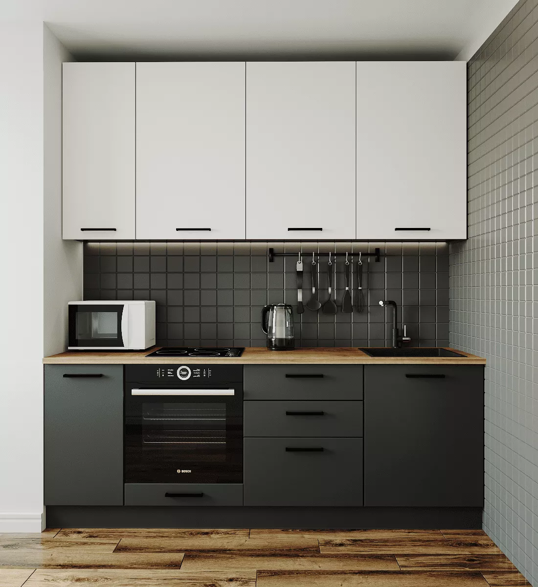 Фасады верхних модулей со свесом 12 мм дают возможность использовать без установки ручек.