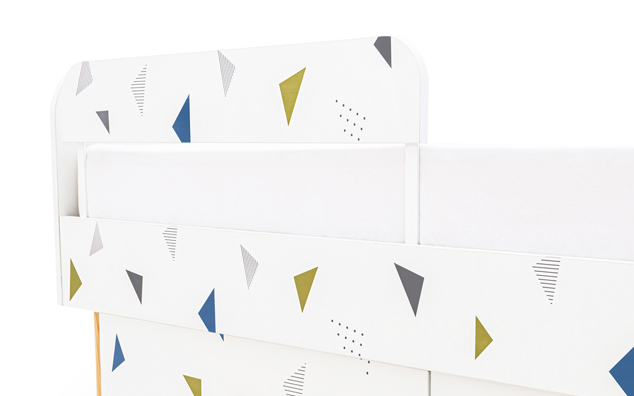 Бортик выполнен из ЛДСП класса Е1. На поверхность нанесен оригинальный рисунок ультрафиолетовыми высококачественными чернилами. Рисунок, нанесенный с помощью фотопечати устойчив к истиранию. Все материалы экологичны и безопасны. Крепежи из металла.