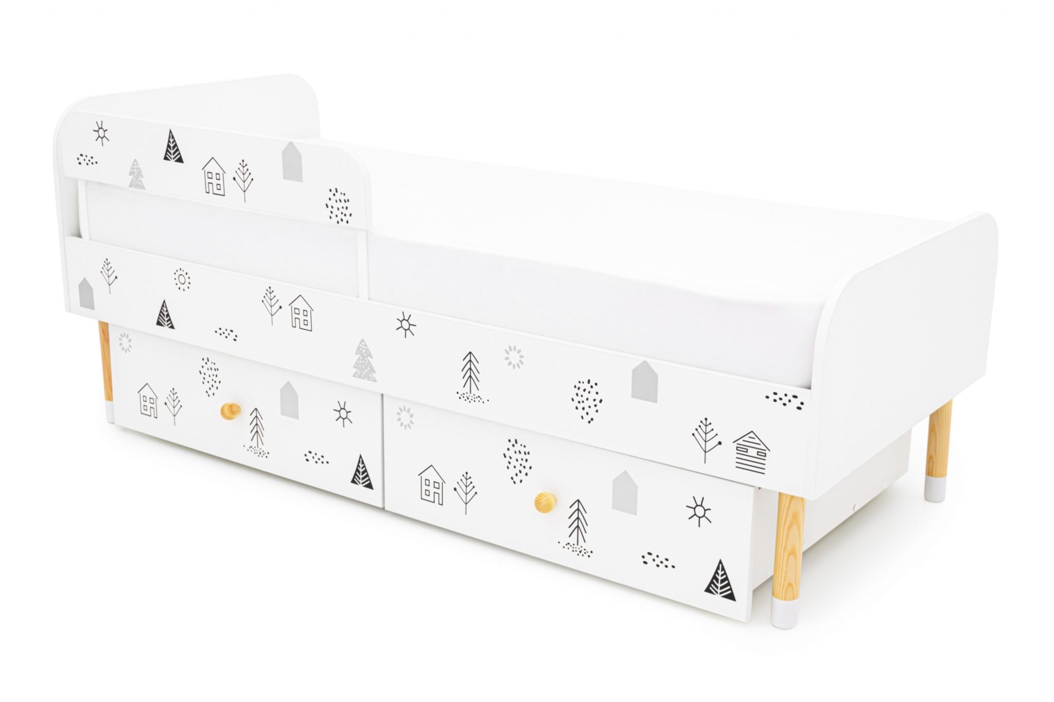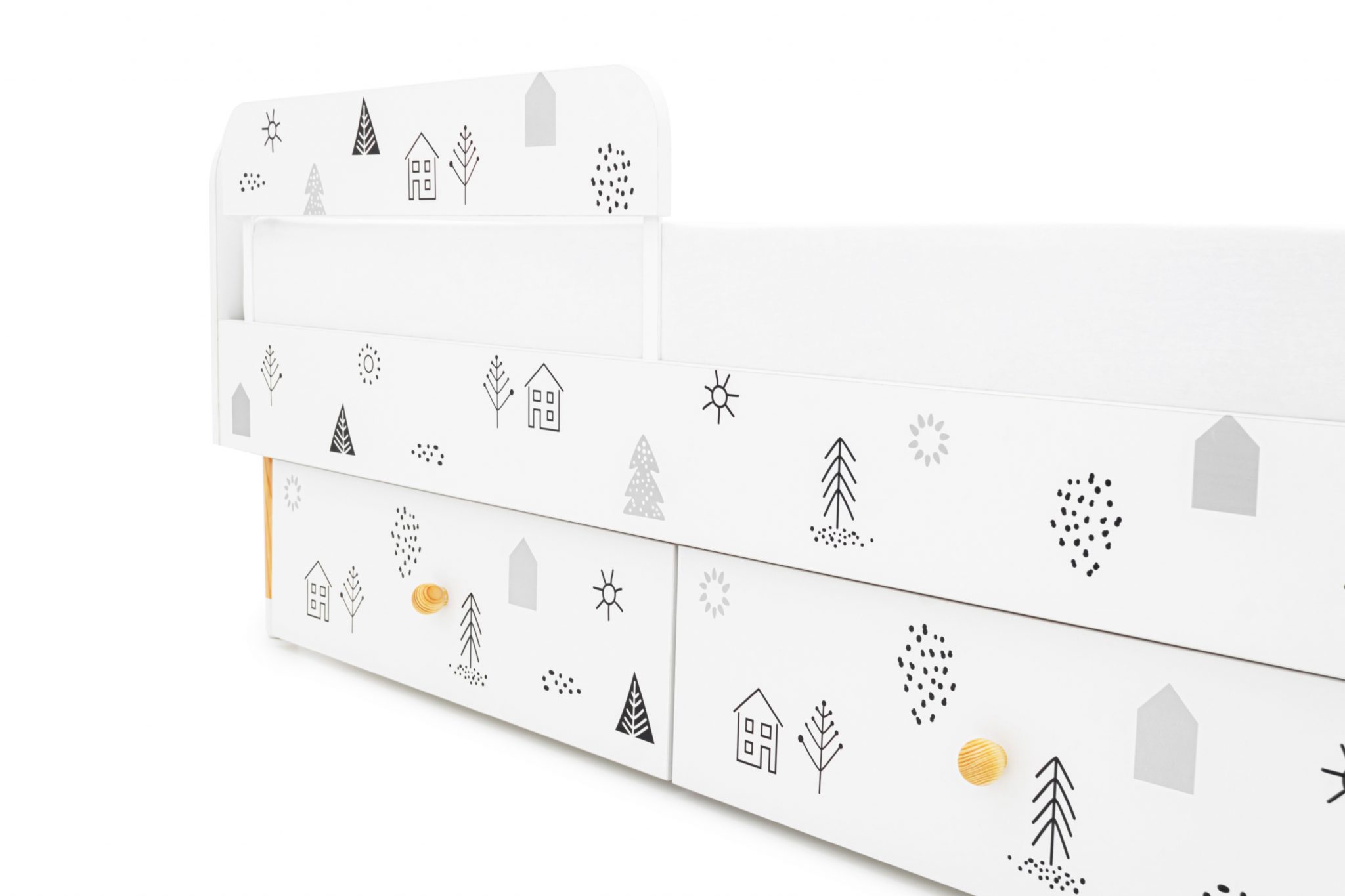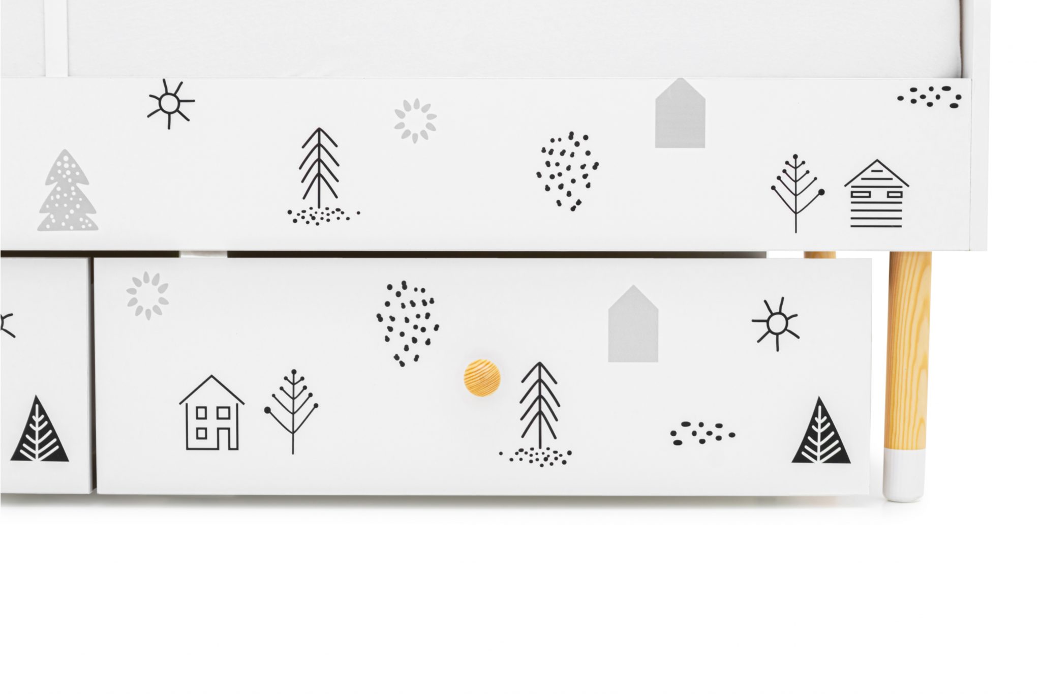 Кровать выполнена в лаконичном скандинавском стиле, который очень популярен сейчас в интерьере и соответствует духу серии «Stumpa» в целом. Милые рисунки оживят кроватку и подойдут к любой цветовой гамме в детской комнате.