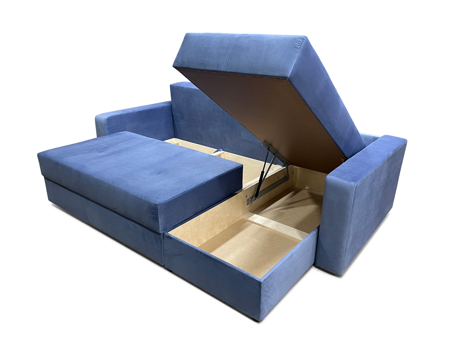 Каркас выполнен из древесины хвойных пород, фанеры лиственных пород, ДСП и ДВП. Элементы сидения выполнены на пружинном блоке высотой 140 мм, что придает еще больший комфорт и мягкость. Вставки из поролона между пружинами обеспечивают долговечность пружинного блока и избежит деформации много лет. В оттоманке установлен полноценный механизм подъема на 2-х газовых амортизаторах производства России, что дает плавный подъем и опускание оттоманки, а также срок службы много лет. В основной части сидячего места установлено 6 опорных и направляющих колес, что дает плавность и точность хода при раскладывании и складывании дивана. Короба выполнены из фанеры высшего качества толщиной 15мм. Элементы дивана скрепляются болтами и гайками, и поэтому диван является УНИВЕРСАЛЬНЫМ, что дает возможность менять направление угла в домашних условиях. Наполнитель подушек: поролоновые "чипсы"