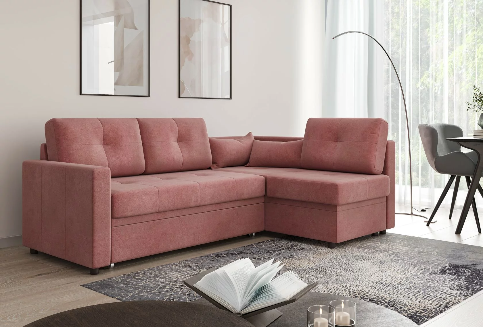 Максимально использовать площадь небольшой гостиной поможет современный угловой диван-кровать «Лира 1». Его основным преимуществом является наличие универсального угла, местоположение которого можно выбрать во время сборки. Механизм трансформации – «Дельфин», в основании дивана – ППУ и пружины «змейка». Производитель предусмотрел удобный ящик для хранения вещей или спальных принадлежностей в оттоманке.