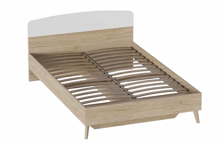 Кровать со спинкой в изголовье с накладкой из МДФ. В изножье кровать стоит на опорах из массива березы. Спинки соединены между собой тремя царгами. Основанием матраца является березовые изогнутые ламели, закрепленные на царгах.