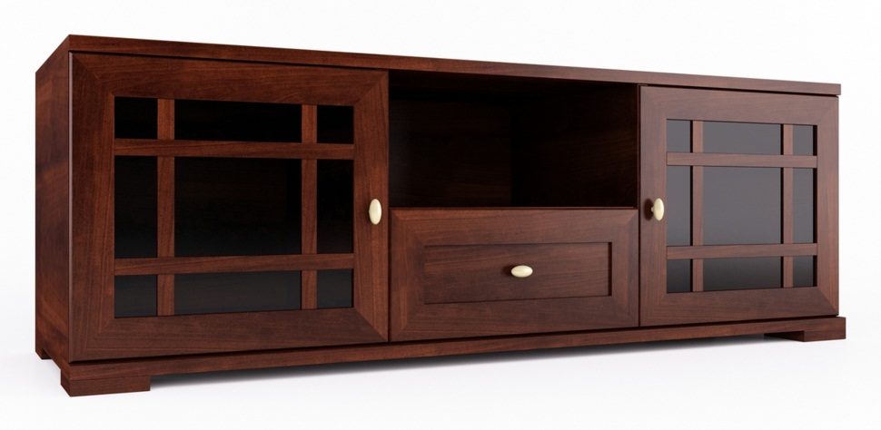 Неглубокая ТВ Тумба в классическом стиле позволит аккуратно разместить в гостиной всю видео и аудио аппаратуру. Центральная ниша шириной 370 мм. Выдвижной ящик (глубиной 350 мм, высотой 120 мм и шириной 365 мм) на шариковых направляющих можно не устанавливать, чтобы увеличить размер ниши в высоту.