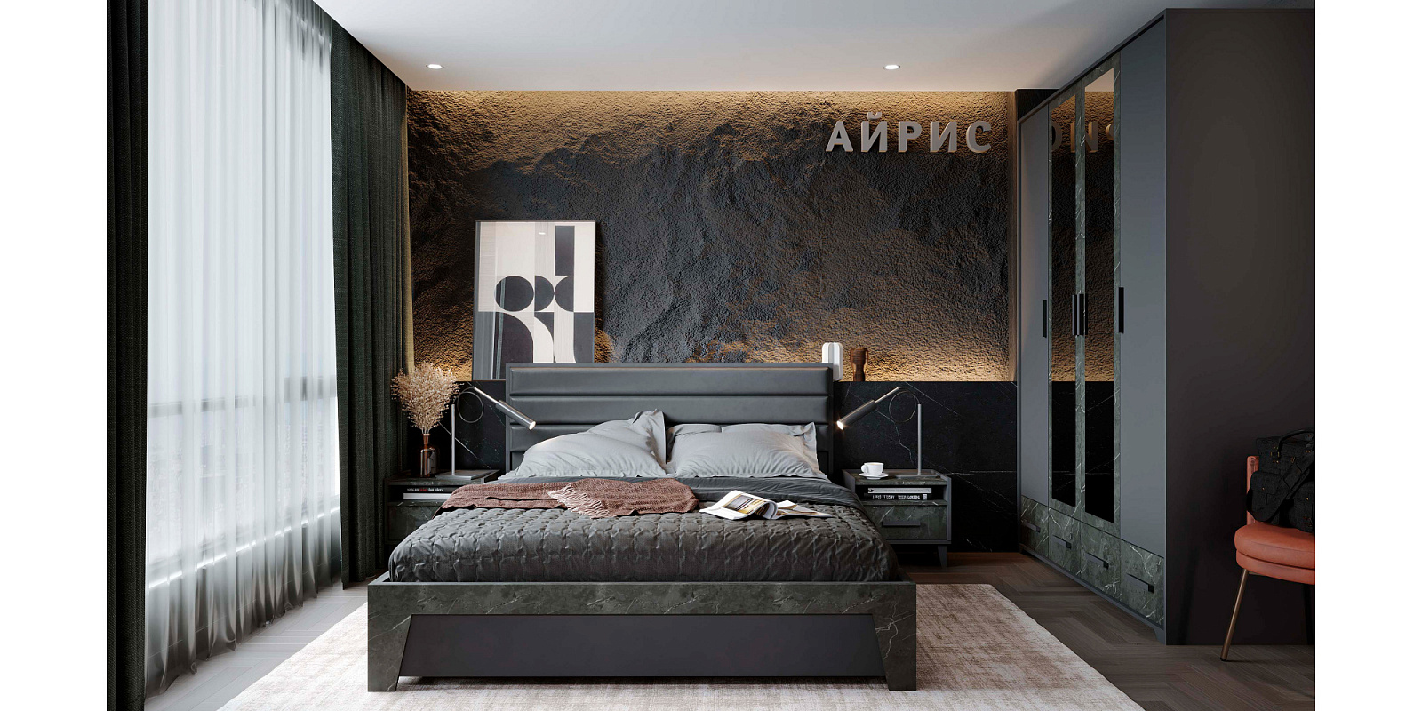 Айрис 555 Шкаф для одежды и белья Антрацит