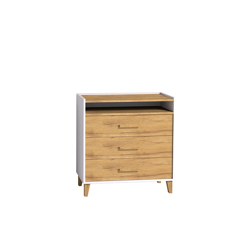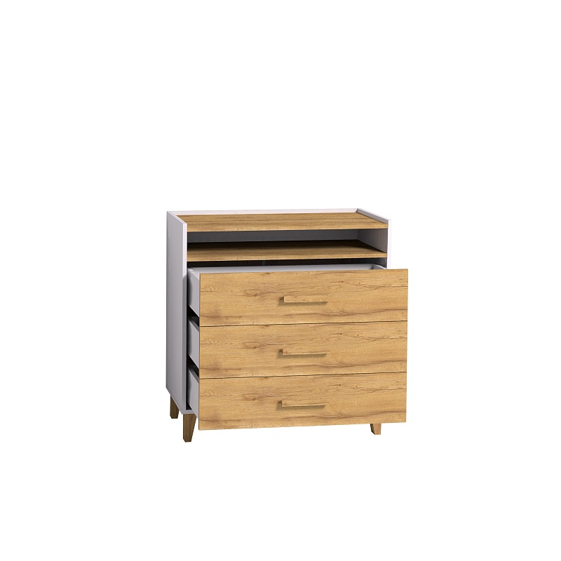 Айрис 455 Комод с нишей и 3 широкими ящиками на шариковых направляющих - выбор обладателей просторных спален. Благодаря его оптимальным габаритам (высота 881 мм, ширина 832 мм, глубина 420 мм), Вы сможете аккуратно хранить в нем все необходимое. Ящики выдерживают нагрузку до 10 кг каждый. Высота опор 120 мм