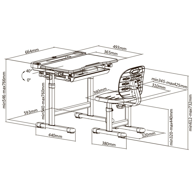 FunDesk Cura - универсальный цвет парты подойдет к любому интерьеру. Столешница легко может настраивается в режим мольберта, рабочую поверхность парты наклоняется до 40° для удобного письма, чтения, рисования. Регулируемая высота парты и стула, удобный выдвижной ящик для хранения ручек и карандашей.