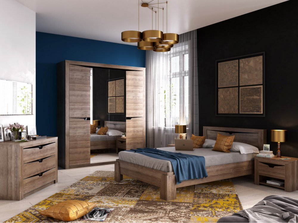 Спальня "Соренто" порадует ценителей лаконичных форм своими простыми, современными линиями и текстурой натурального дерева.