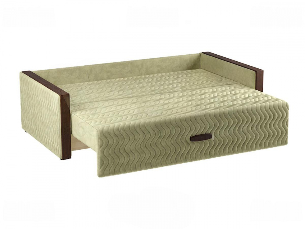 Диван отлично впишется в любой стиль интерьера. Боковины украшены деревянным декором.