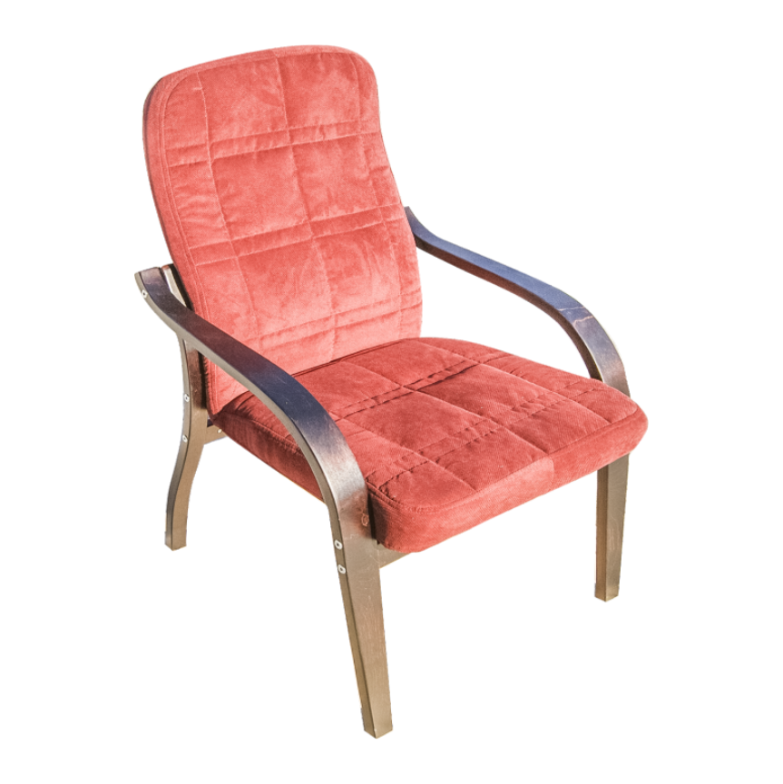 Подлокотники выполнены по гнутоклееной технологии из березового шпона с защитно-декоративным покрытием. Возможны различные варианты цветовых решений мягкой обивки и каркаса кресла