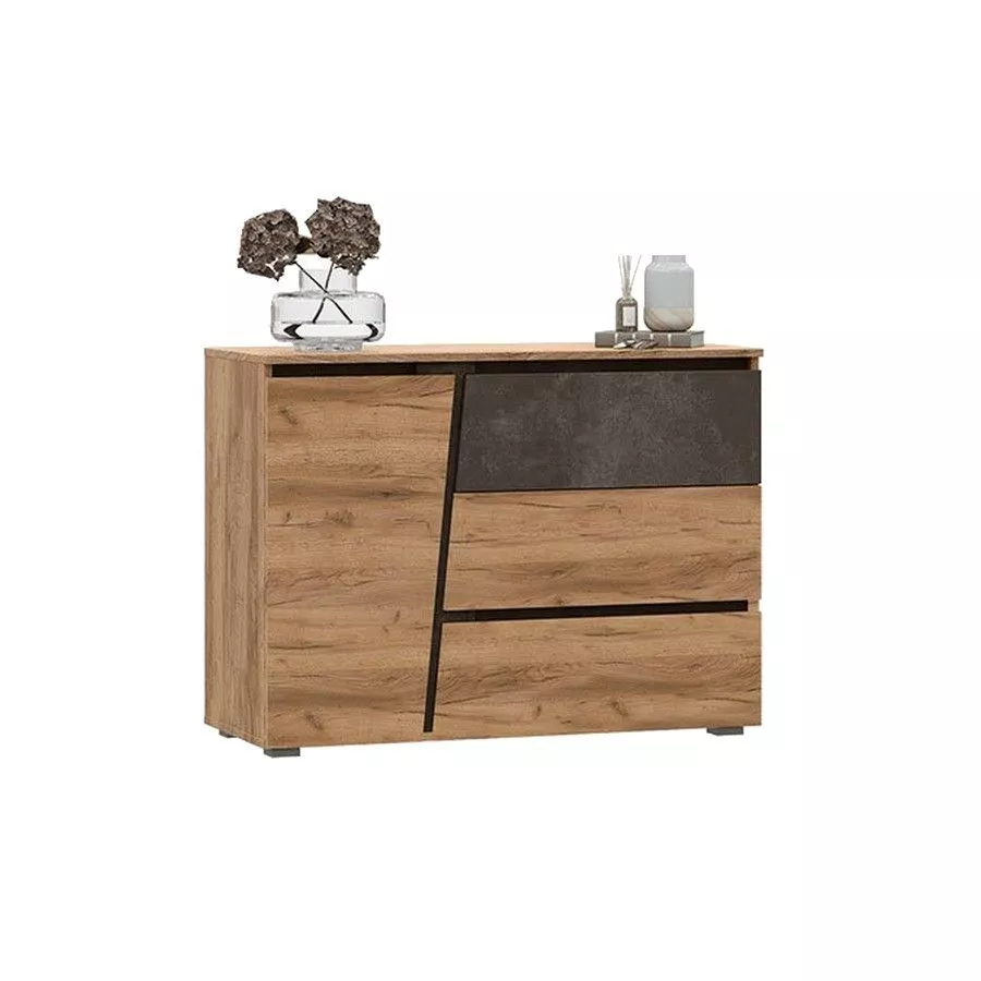 Комод Соренто органично впишется в интерьер современной гостиной или спальни. Три выдвижных ящика для аксессуаров и разных мелочей помогут поддерживать порядок и быстро найти нужную вещь. Сочетается с другими элементами из одноименной коллекции.