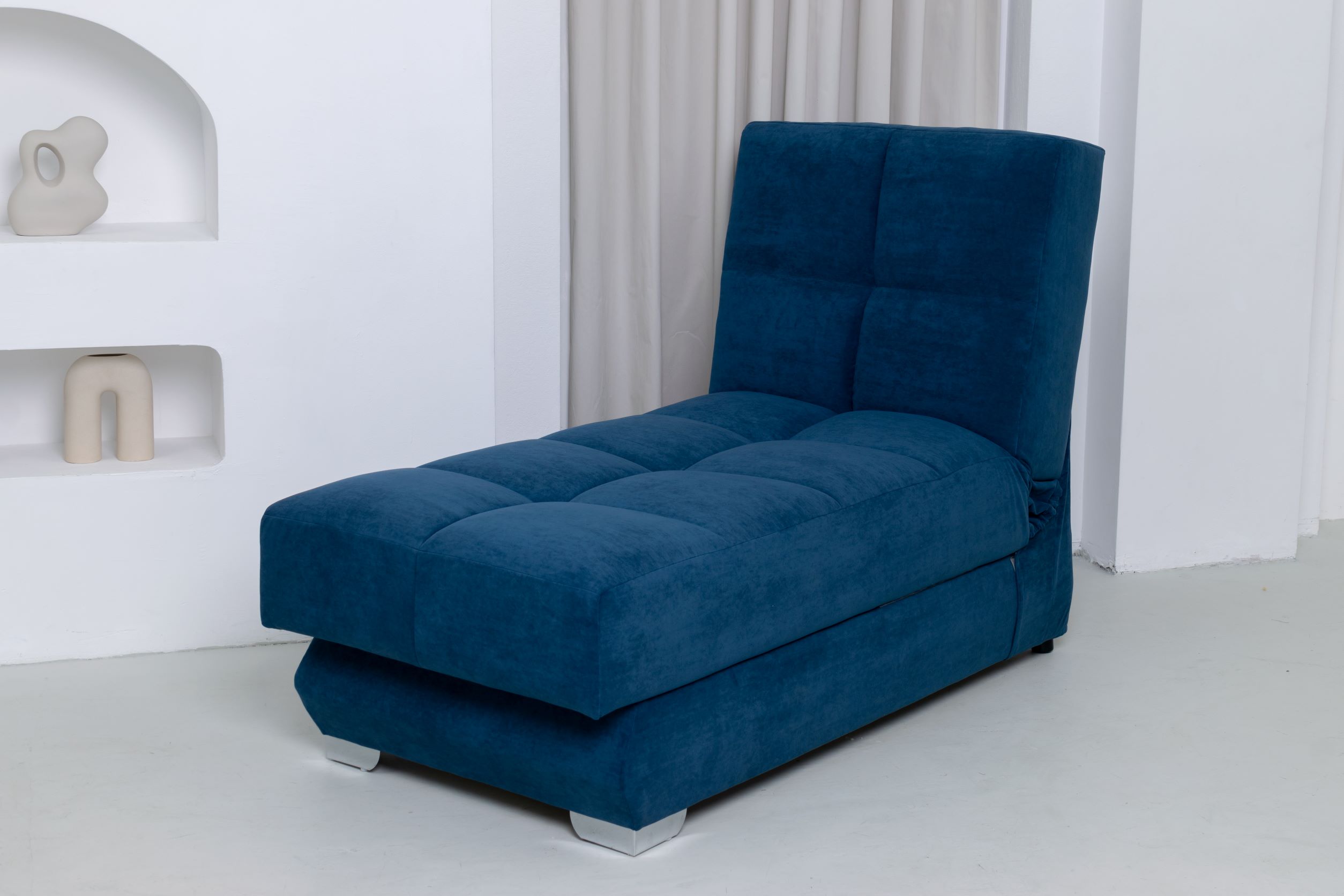 Диван является модульным, состоит из оттоманки и диванной секции. Каждый модуль раскладывается и может стоять независимо друг от друга.