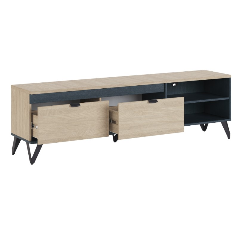 Тумба имеет два выдвижных ящика на шариковых направляющих полного выдвижения и открытую нишу с полкой из ЛДСП.