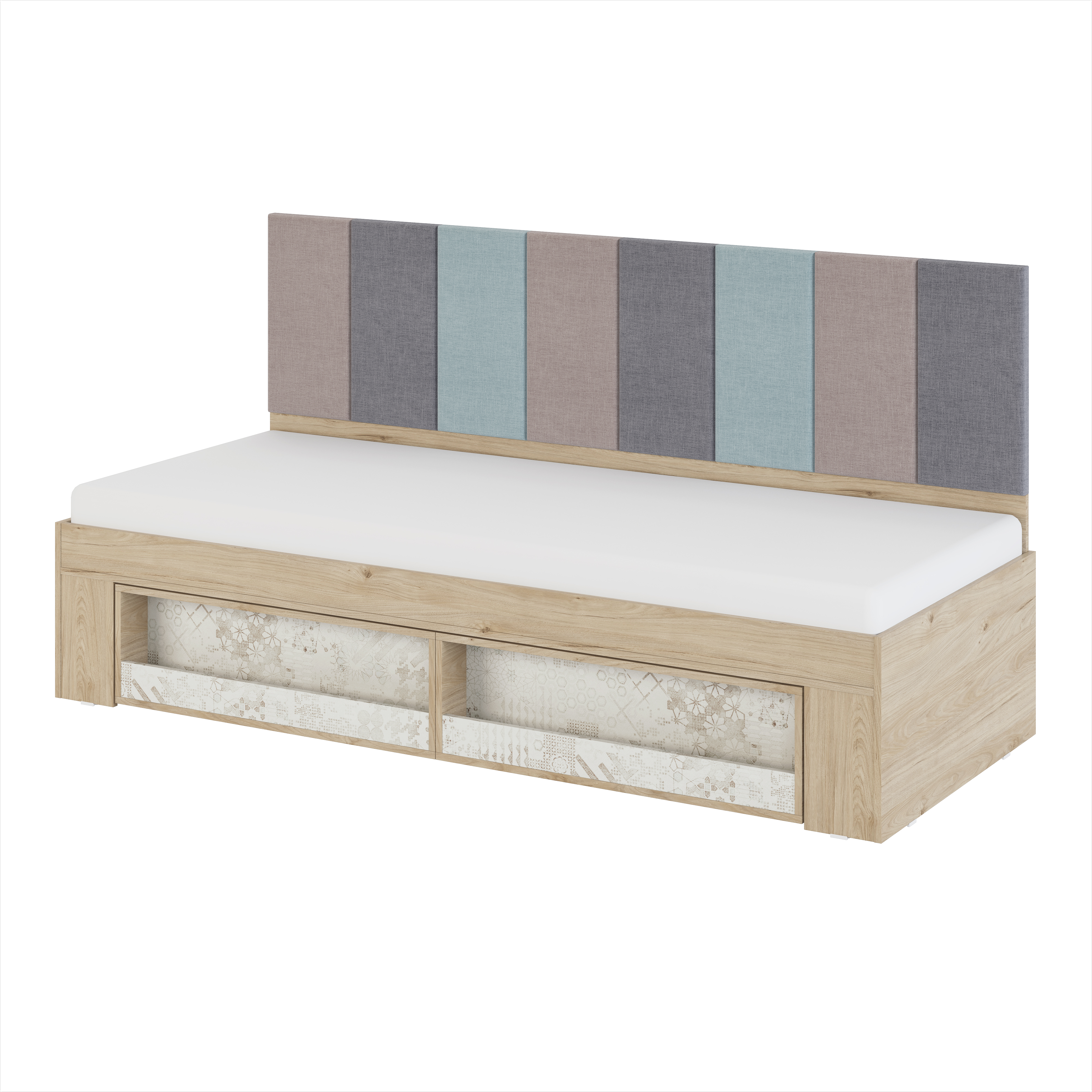 Кровать имеет два выкатных ящика на роликовых опорах, открываются одновременно.