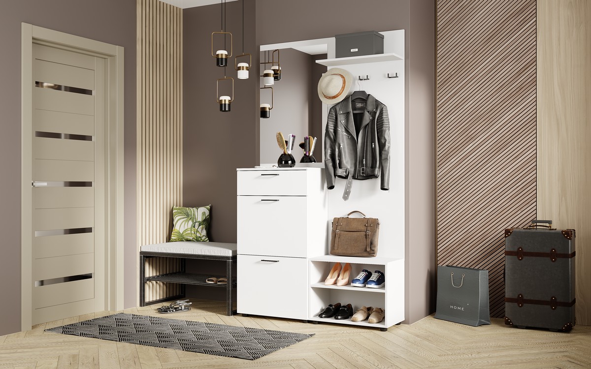 • Светлые тона визуальное расширяют ограниченное входное помещение квартиры