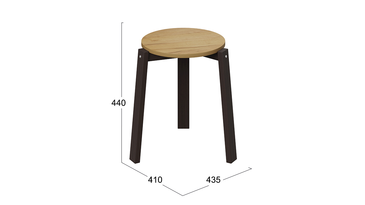 Табурет обладает четко установленной конструкцией. Сиденье, выполненное из ЛДСП с тремя устойчивыми ножками, изготовленными из бука, надежно скреплены между собой.