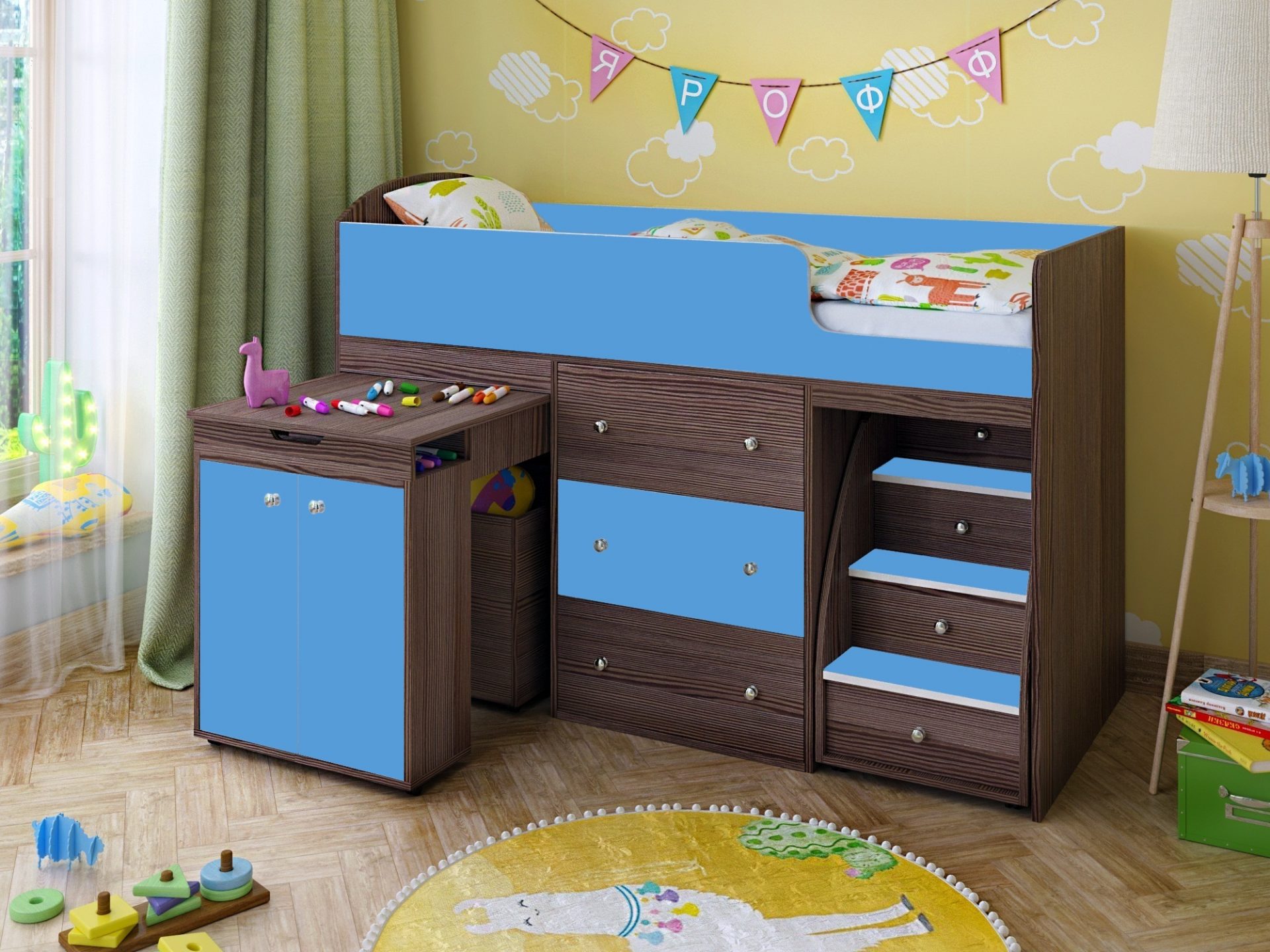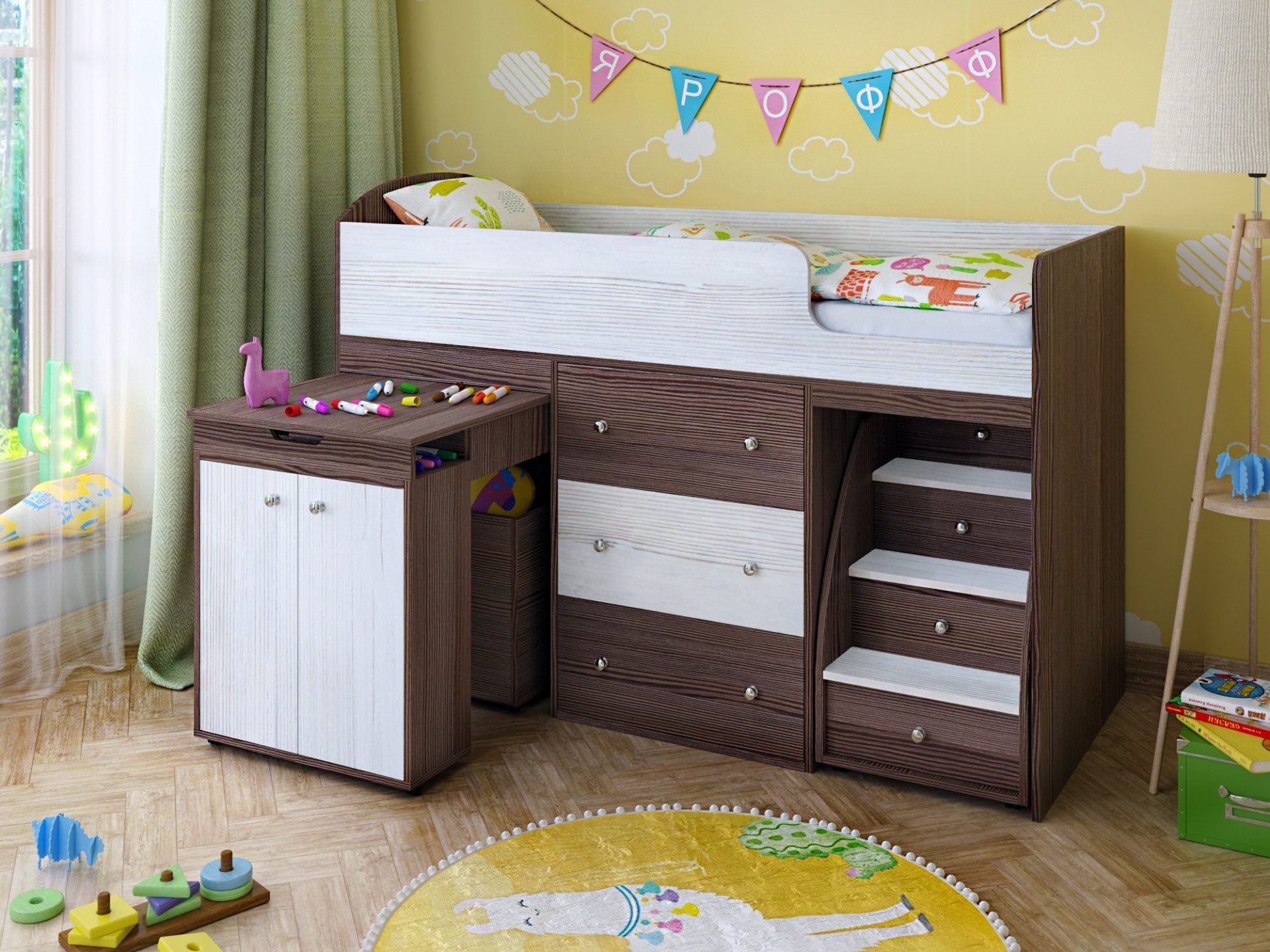 Стильная и красивая кровать-чердак от производителя ЯРОФФ представлена в разных цветовых сочетаниях, а потому позволит обустроить как комнату девочки, так и мальчика. Компактная выдвижная лестница с ящиками, ведущая на второй ярус к спальному месту, бережет пространство комнаты.