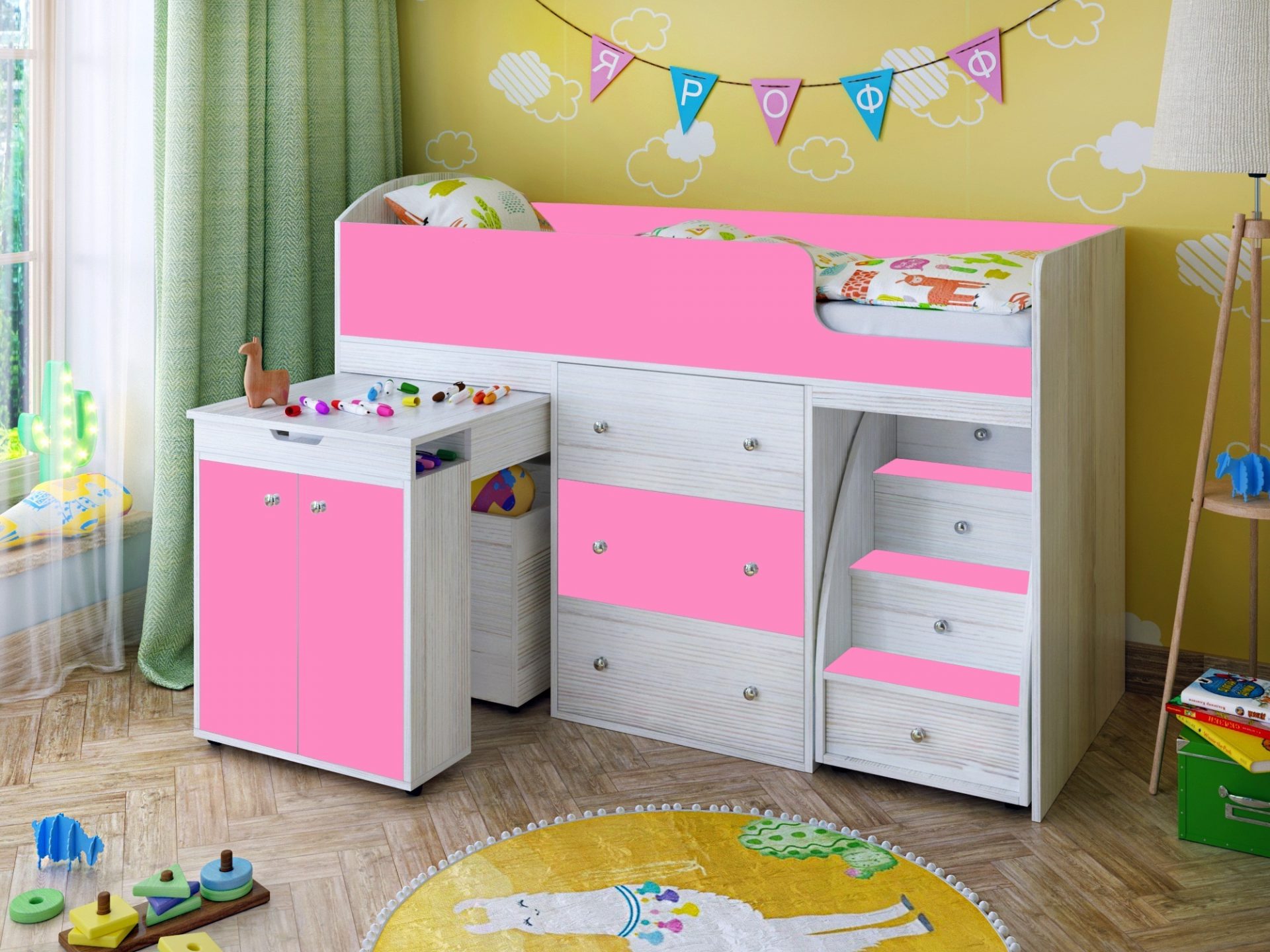 Обустройство детской комнаты – важная задача, а если эта комната принадлежит маленькой принцессе, тогда к ее оформлению нужно подойти не только ответственно, но и творчески. Многофункциональный, практичный, но при этом красивый и стильный комплект, основой которого является кровать-чердак «Малыш» от фабрики детской мебели ЯРОФФ в Москве станет решением всех задач.