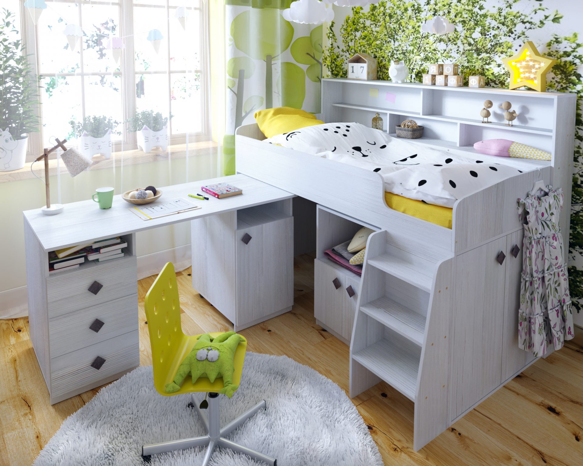Кровать-чердак «Малыш 5» — это прочная конструкция, качественные и экологически безопасные материалы изготовления, современный дизайн и эргономичность.