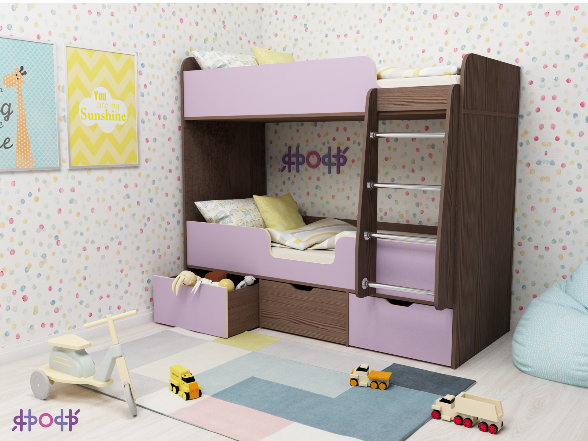 Если вы хотите обустроить детскую комнату для двух малышей, тогда обратите внимание на двухъярусную кровать «Малыш Двойняшка»: компактная модель вмещает в себе разу два полноценных спальных места, а также ящики, в которых можно разместить подушки, одеяла, одежду или игрушки ваших детей. То есть, поставив такую двухъярусную кровать в комнате, вы получаете на небольшой площади сразу две кровати и еще места для хранения, не загромождая пространство детской.