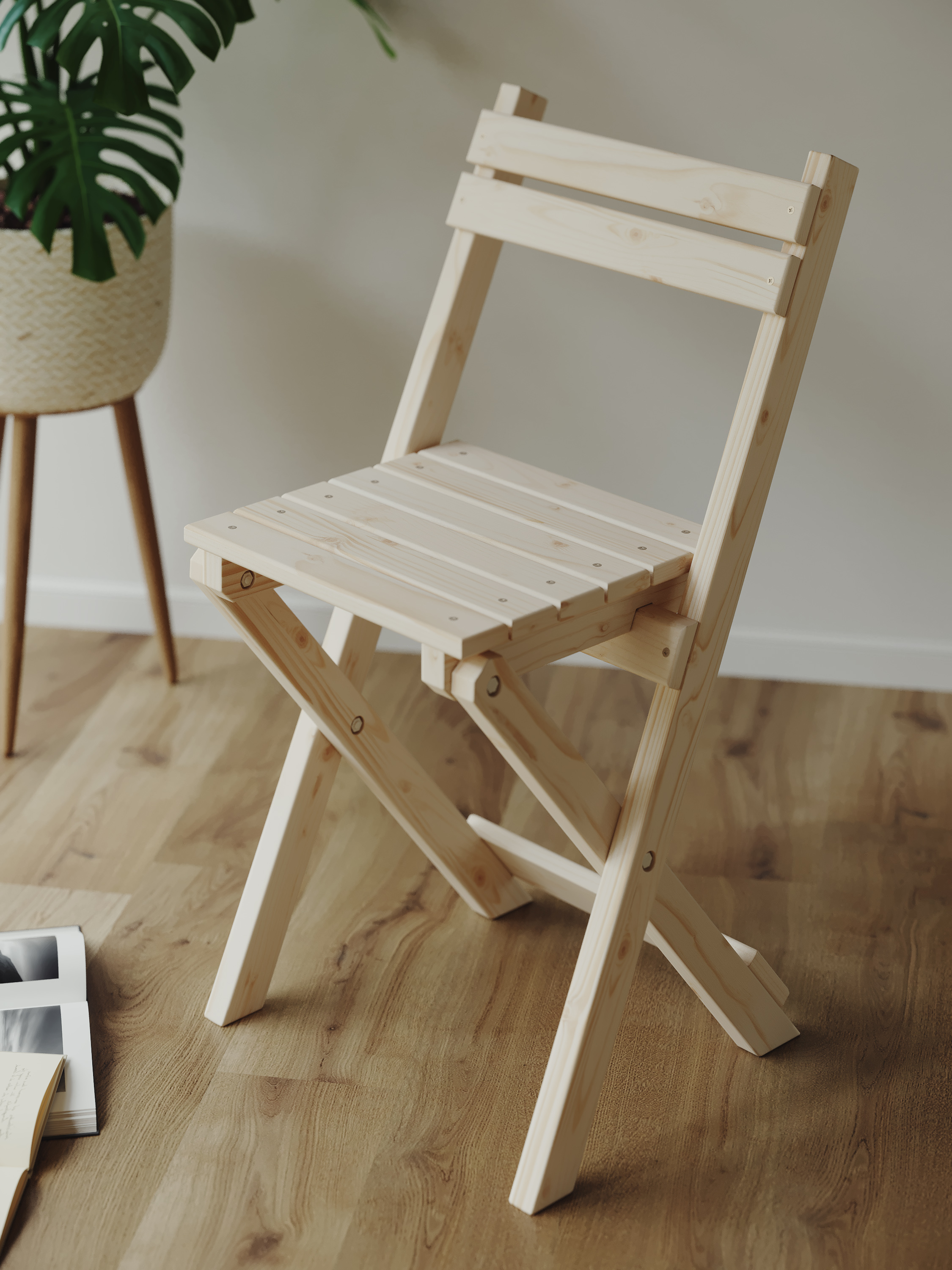 Складной стул из натурального дерева