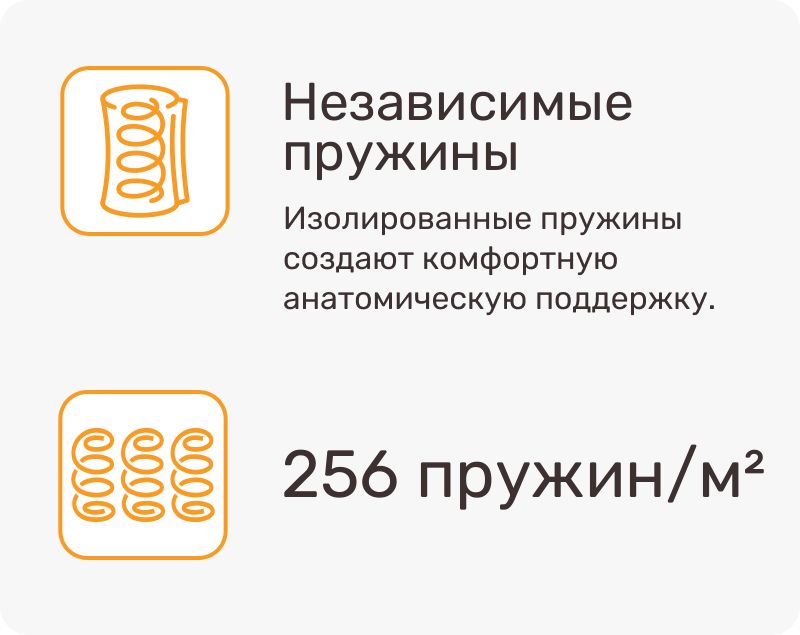 «Рабочая» сторона матраса выполнена из Soft Foam — это упругий пенообразный материал, который хорошо держит форму и не продавливается в процессе эксплуатации. Эластичность слоя и средняя жесткость обеспечивают ощутимый анатомический эффект.