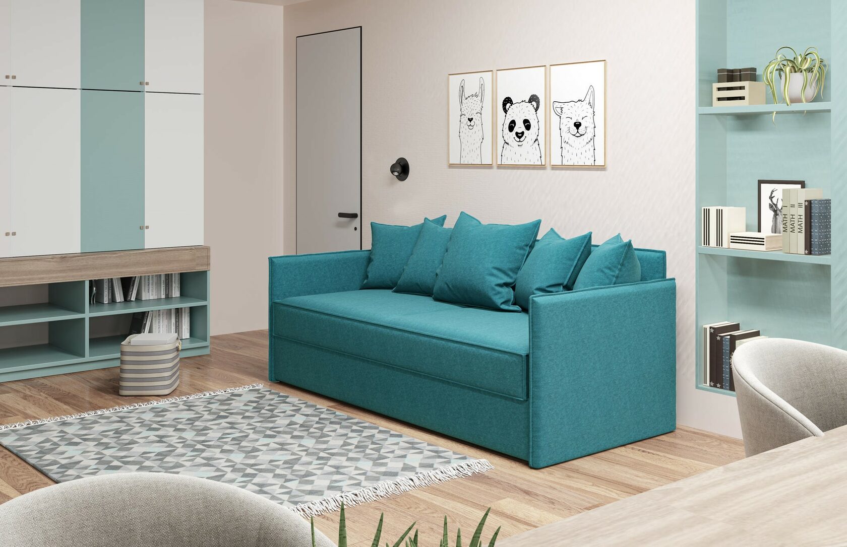 Лучшее сочетание удобства, компактности и функциональности. Модель в лаконичном дизайне поможет оформить уютную и удобную зону для сна и отдыха в небольших гостиных или детских комнатах. Диван обладает глубокой посадкой, а приспинно-декоративные подушки позволяют создать удобное место для отдыха. Элегантно выглядят узкие мягкие подлокотники с объёмным швом.