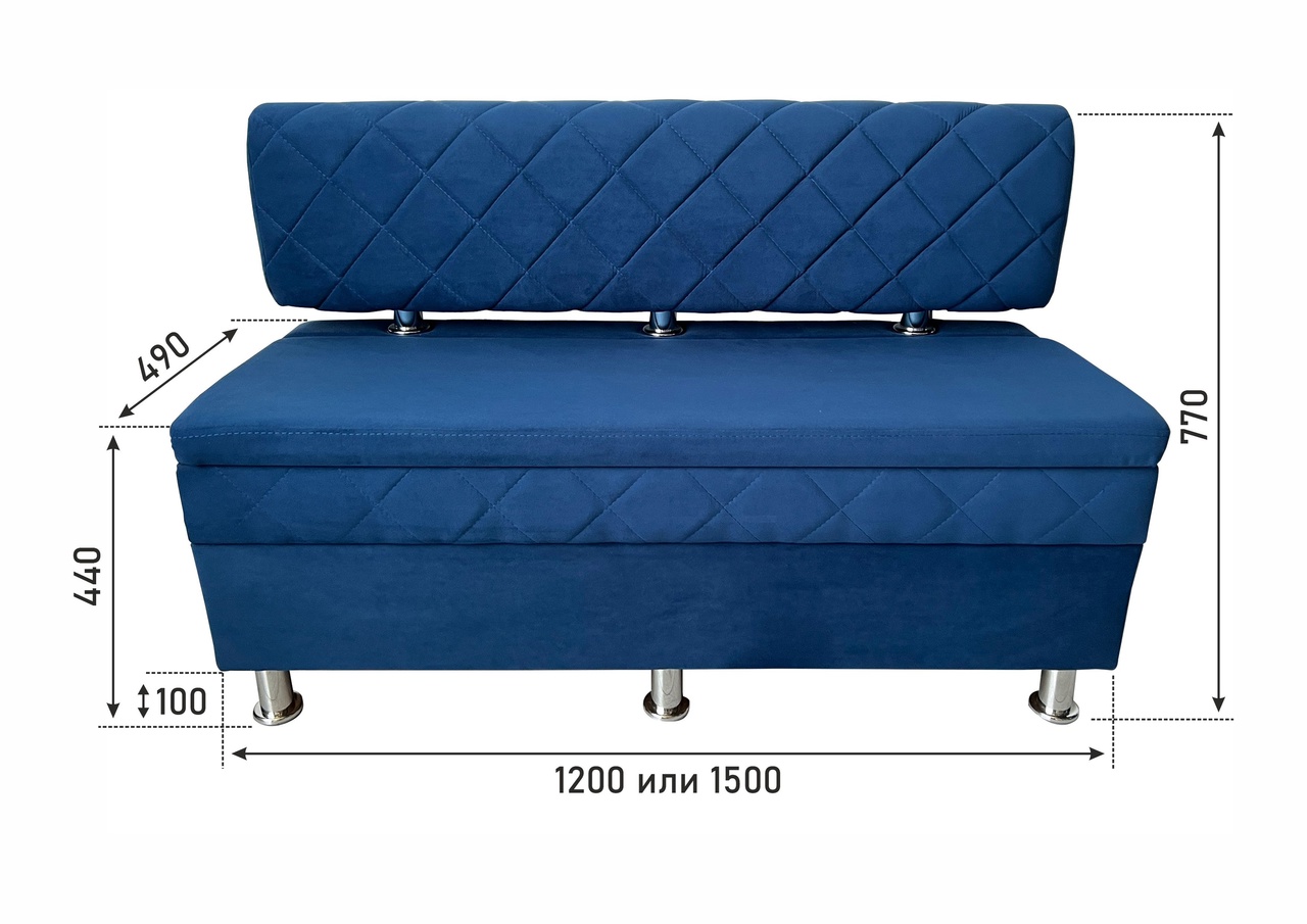 - Размеры: длина 120/1500мм, высота 770мм, глубина 490мм.