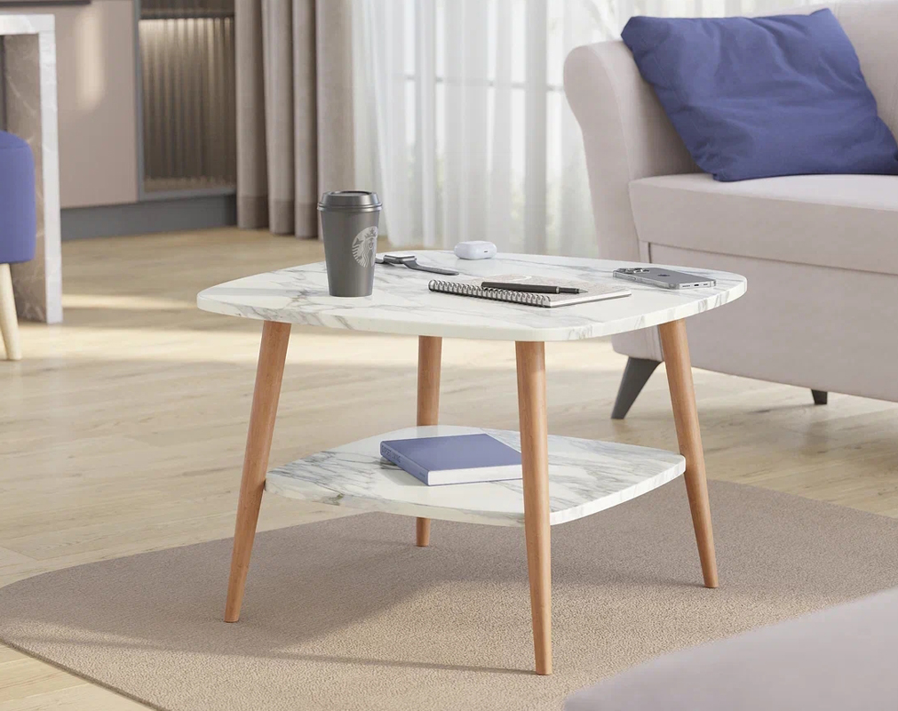 Стол журнальный Квадро Мрамор белый
