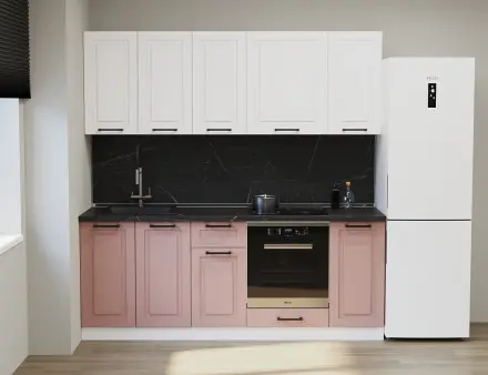 Аликанте 19: Цвет фасада: Шарли Pink, Шарли белый, корпус Серый, столешница 28мм: Каспий черное золото