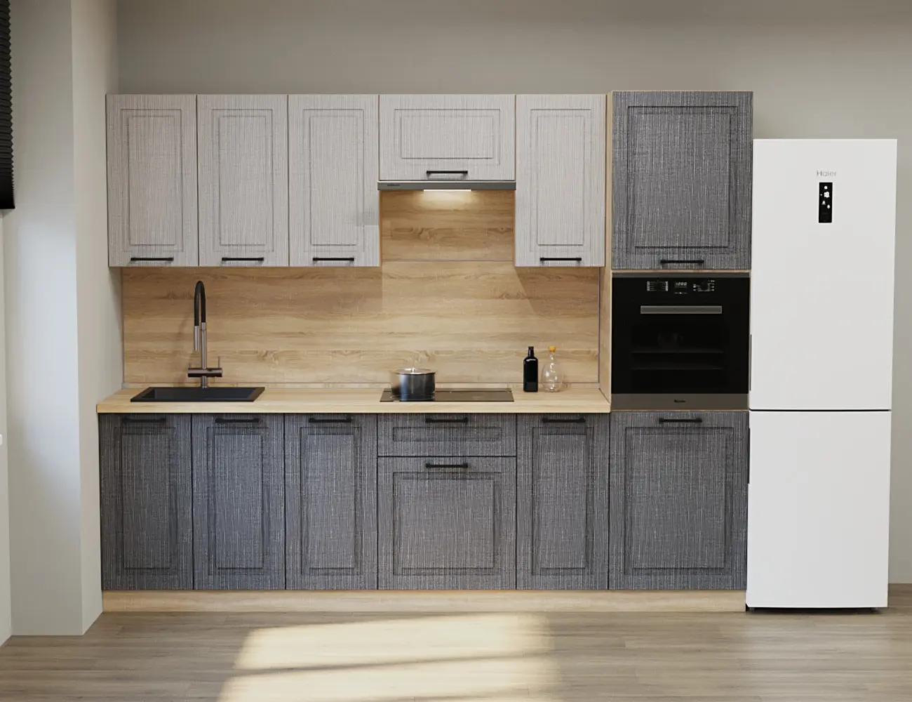 Аликанте 22: Цвет фасада: Чесура светлая, Чесура темная, корпус Дуб сонома, столешница 28мм Дуб сонома