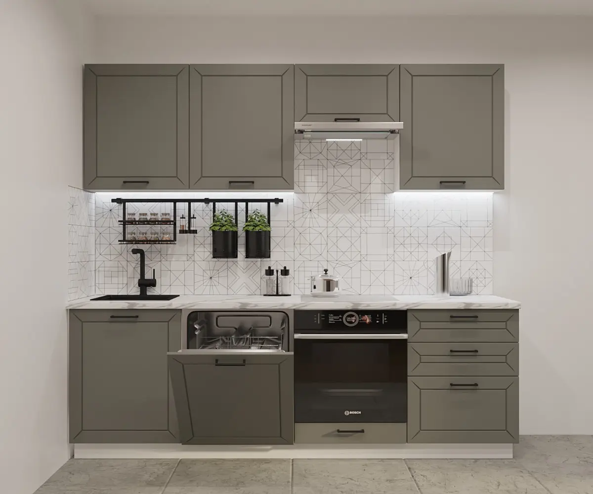 Магазин мебели «100Диванов» предлагает купить Кухонный гарнитур арт. 2 Обсидиан Кристалл 2400 мм в Урае по выгодным ценам от производителя с доставкой.