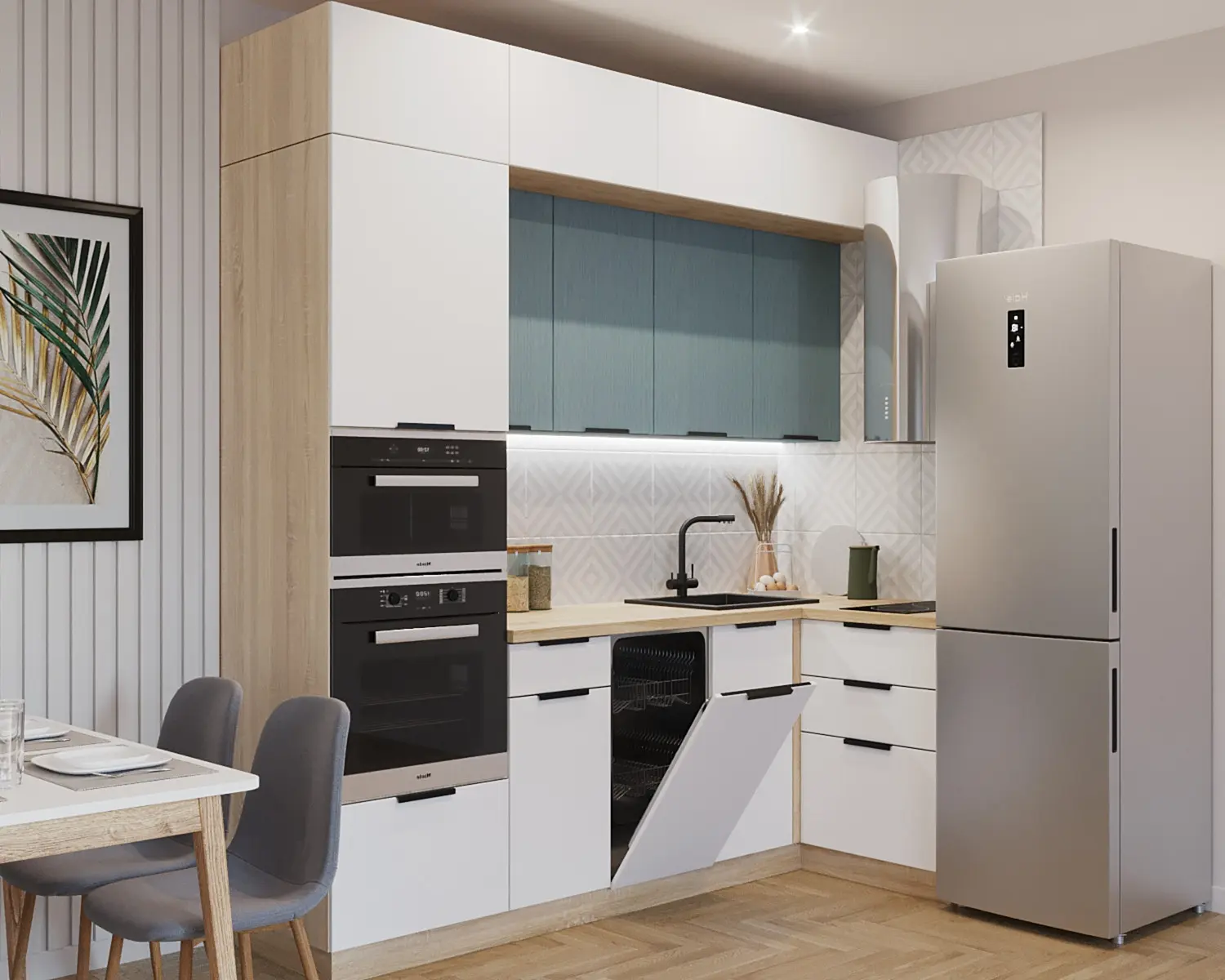 Магазин мебели «100Диванов» предлагает купить Кухонный гарнитур арт. 6 Тальк РоялВуд Голубой 2450х1200 мм в Урае по выгодным ценам от производителя с доставкой.