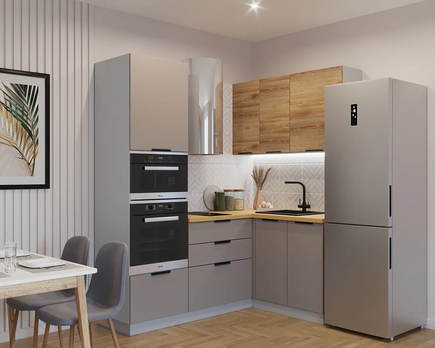 Магазин мебели «100Диванов» предлагает купить Кухонный гарнитур арт. 8 Обсидиан Рустик натур 2000х1400 в Урае по выгодным ценам от производителя с доставкой.