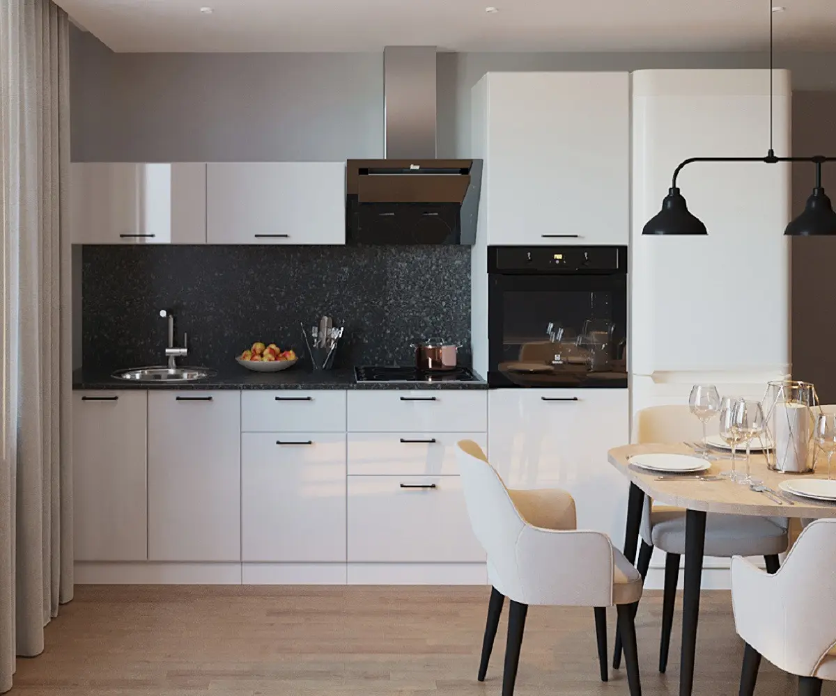 Белая глянцевая кухня неизменно пребывает на пике популярности. Она является настоящим олицетворением легкости, свежести и гармонии. В таком помещении даже воздух покажется более чистым, а солнечный свет наполнит ярким сиянием каждый ее уголок.